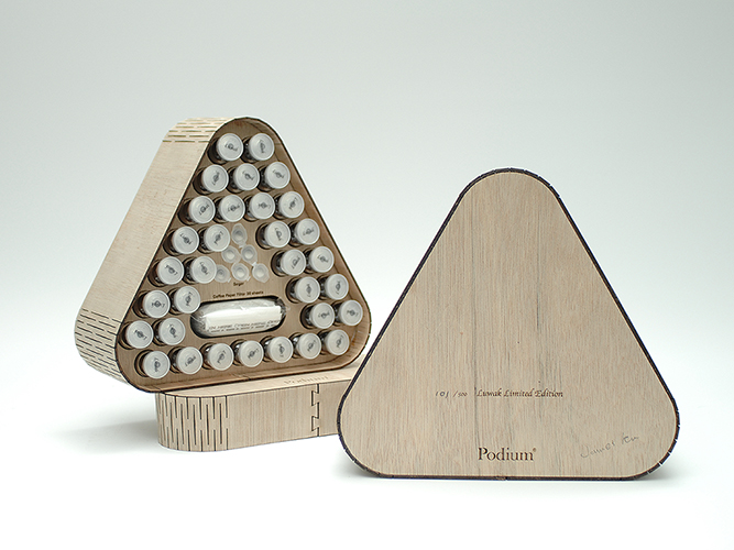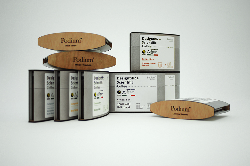 포듐커피는 갓 볶은 신선한 원두의 맛과 향을 그대로 전달하기 위해 세계 최초로 제약시설 시스템을 도입한 포듐의 클린룸에서 제조하였습니다. *포듐의 클린룸은 습도 10%미만, CO2 400PPM미만의 청정작업 환경을 유지합니다. 포듐의 주요 품목인 옴니와 옴니스페셜은 5가지 프리미엄 원두를 모두 담았으며, 삼각루왁과 미니루왁은 인도네시아 발리 킨타마니지역의 야생루왁만을 담았습니다. 또한 전 제품의 하단 우드케이스는 'Eco/Re-Use'디자인 컨셉으로 제작되어, 스마트폰의 음악을 플레이하고 중앙 필터홀에 넣으면 더욱 깊고 풍부한 사운드를 즐길 수 있는 공명스피커(Non-Powered Resonance Speaker)로 재탄생 합니다. 포듐의 옴니는 한국최초로 이탈리아 정부 산하 가장 권위있는 디자인 상인 '황금콤파스(Compasso d'Oro)' packaging 부문의 최우수상과 KIDP(한국디자인진흥원) 굿디자인 상을 수상해최고의 디자인으로 인정받은 제품입니다.