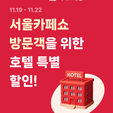 Cafe Show Seoul x 리아트래블 커피 향이 머무는 도시, 서울. 11월, 서울카페쇼에 방문하시는 여러분의 하루가 더 편안하고 특별해질 수 있도록 리아트래블과 함께 호텔 특별 할인을 준비했습니다. ✅ 대상 - 서울카페쇼 참가 기업 및 참관객 - 단체 및 기업 고객의 경우, 추가 맞춤 견적 할인 제공 ✅ 혜택 내용 - 코엑스 인근 제휴 호텔을 리아트래블 특별 할인가로 예약 가능 - 단체 고객 대상 추가 할인 및 맞춤 견적 제공 - 레지던스 호텔 / 조식 포함 / 무료 취소 등 다양한 옵션 선택 가능 ✅ 리아트래블이란? AI 기반 호텔 예약 플랫폼으로, ‘견적 요청’ 기능을 통해 여행 일정, 인원, 예산 등 세부 조건을 반영하여 가장 적합한 호텔.......