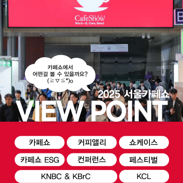 커피의 무한한 가능성을 만나는 곳, 서울카페쇼 우리가 사랑하는 이 작은 한 잔에, 어쩌면 우리 상상보다 어마어마하게 큰 가능성이 담겨있을지도 몰라요. 4일 간의 커피 여정을 떠날 준비를 시작하세요!✈️ 카페쇼 티켓 예매 바로 가기 네이버 예약 :: 2025 서울카페쇼 네이버 예약 :: 제14회 월드커피리더스포럼 2025 A Cup of the World 제24회 서울카페쇼 2025. 11. 19 – 22, 코엑스 전관 [The 24th Seoul Int’l Cafe Show] Nov. 19-22. 2025 Coex, Seoul, Korea h. www.cafeshow.com i. www.instagram.com/seoulcafeshow f. www.facebook.com/cafeshowseoul l. linkedin.com/showcase/cafeshowseoul b. blog.naver.com/cafeshow
