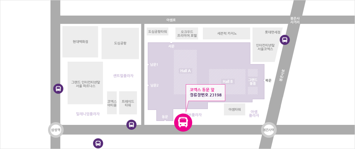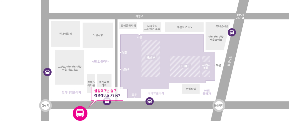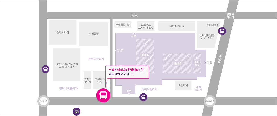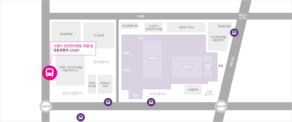 그랜드 인터컨티넨탈 호텔(삼성역 5번 출구) 앞 - 23201 정류장